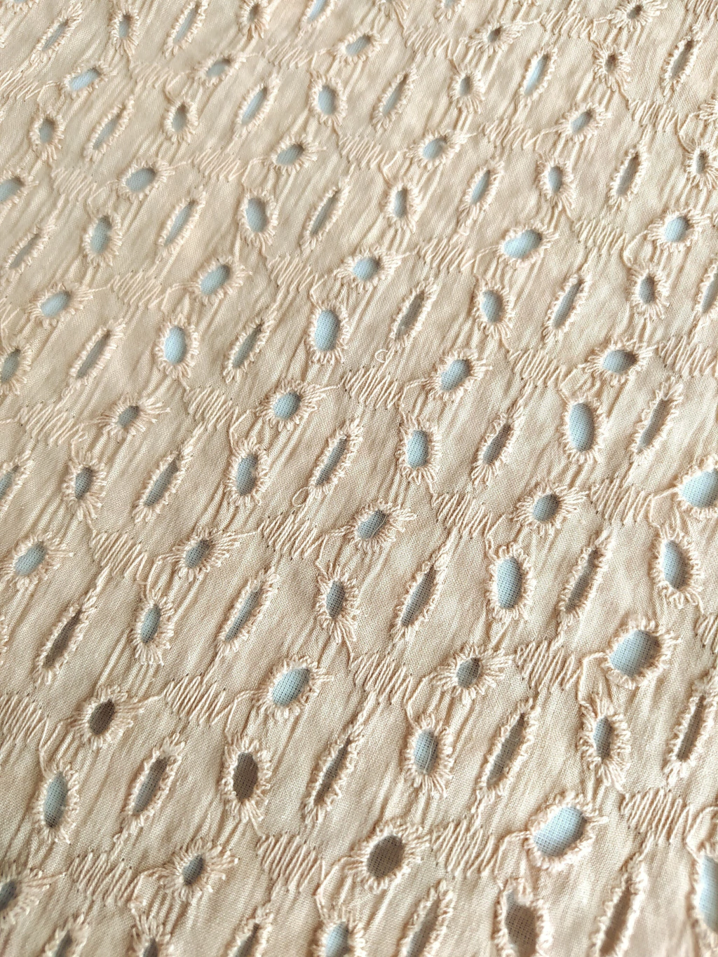 Broderie industrial importado de la India, en color beige.