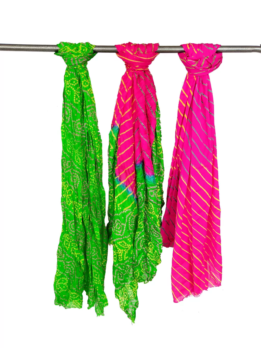 Set de 3 piezas de poliéster con estampa industrial, juntas completan un saree de 6 mt x 1.10 mt de ancho.